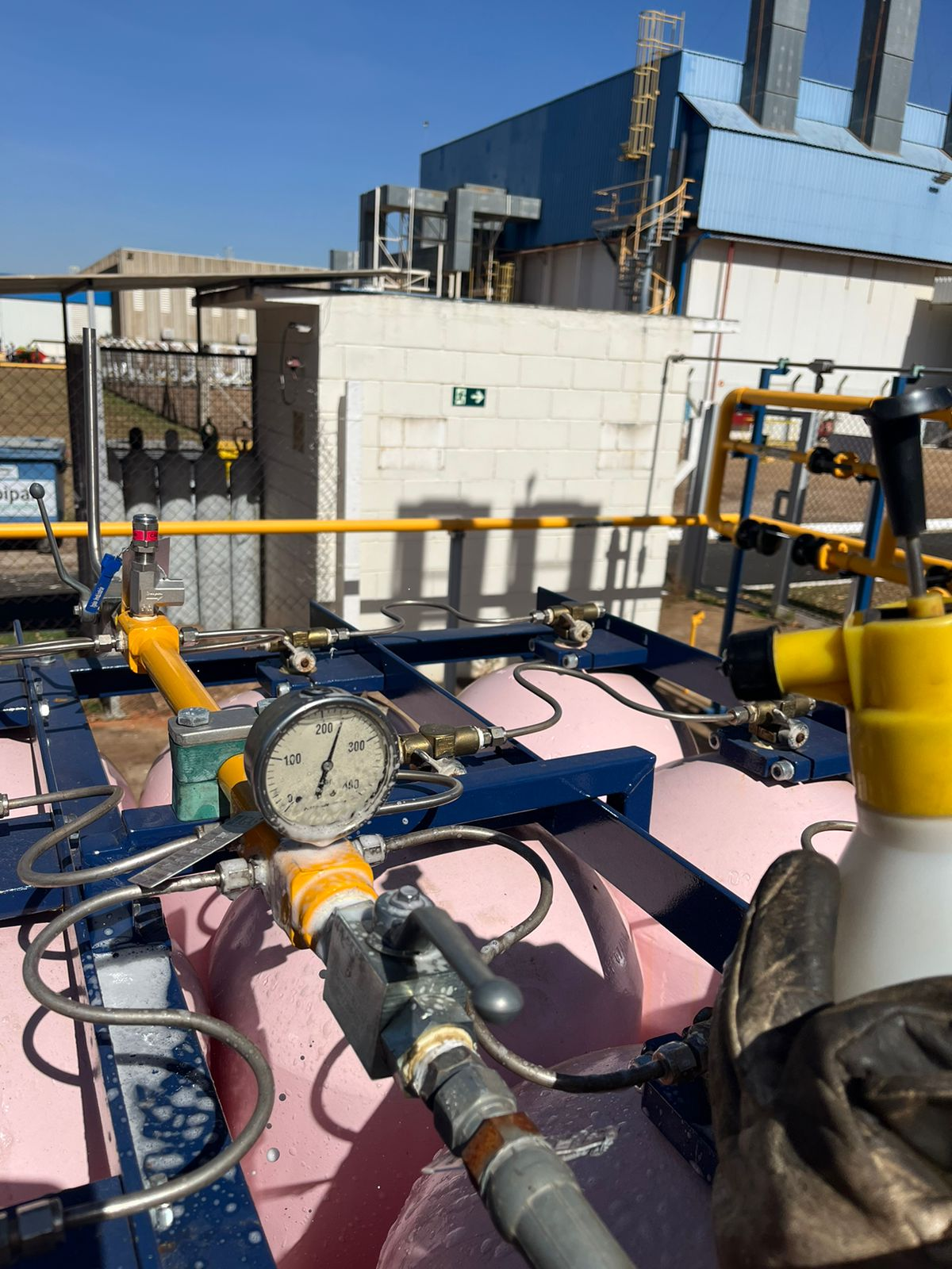O teste de estanqueidade em tubulação de gás consiste em pressurizar o sistema com ar ou nitrogênio e monitorar a variação da pressão ao longo do tempo.